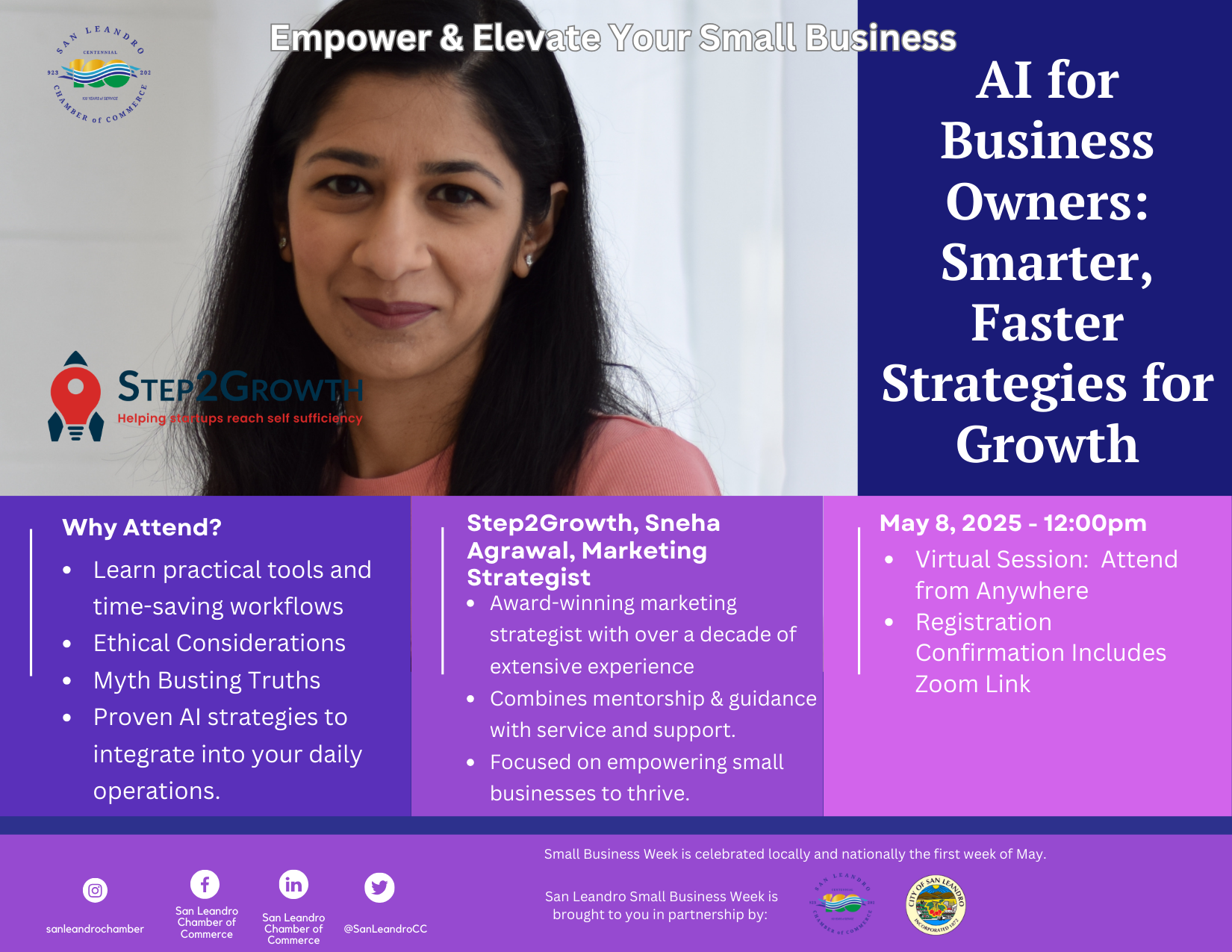 Why We Offer This Free Event:The SLCC is committed to empowering business owners with the tools, connections, and knowledge they need to thrive. The business community is vital to our city's economic health and innovation. By offering this week-long series of free workshops and networking opportunities, we aim to lower barriers to growth, foster collaboration, and invest in the long-term success of San Leandro’s diverse business landscape.